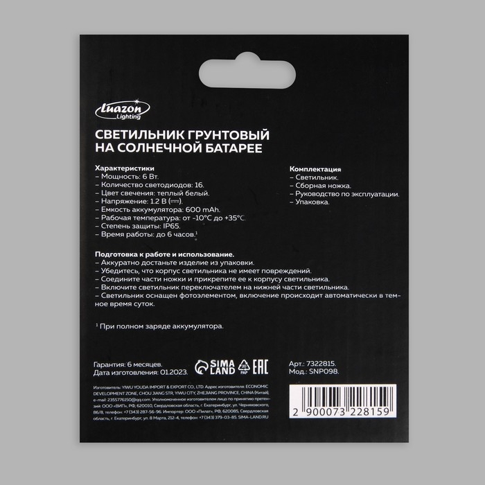Садовый светильник на солнечной батарее, 11.5 × 13 × 11.5 см, 16 LED, свечение тёплое белое