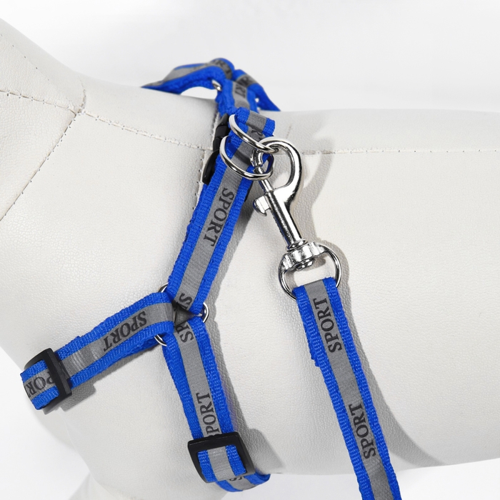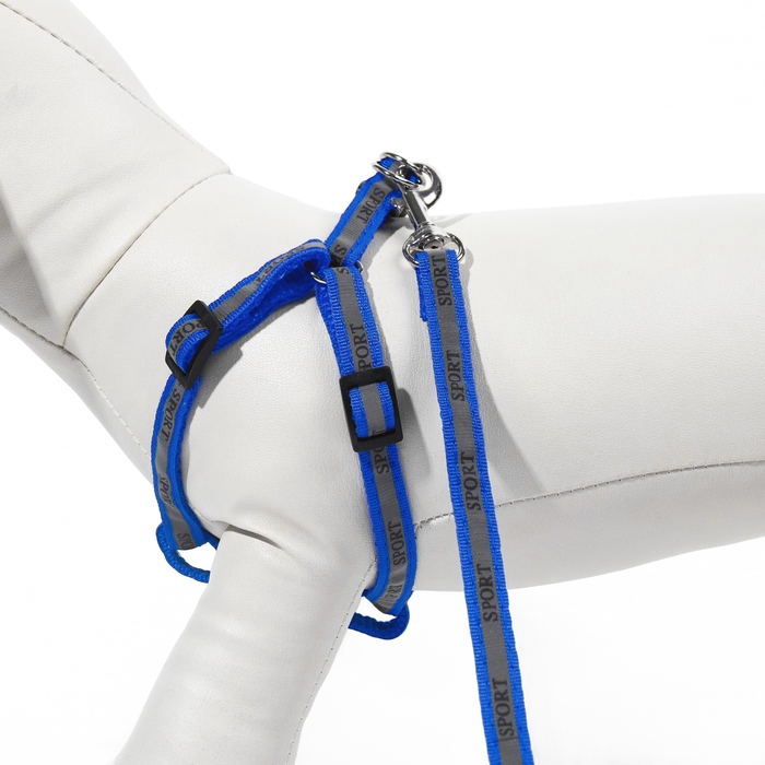 Комплект "Спорт" светоотражающий, поводок 120 х 1 см, ОГ 23-35 см, синий