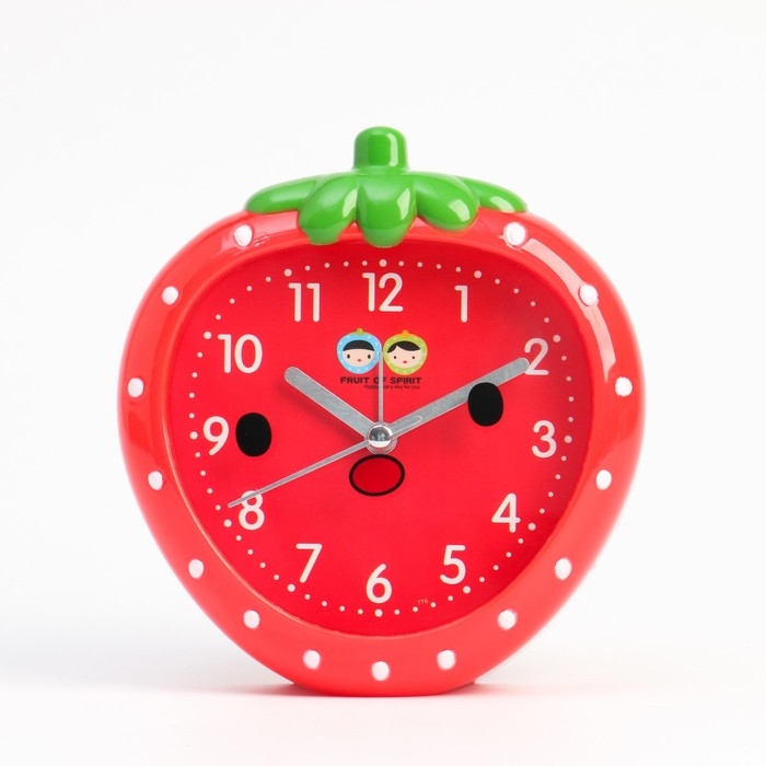 Часы - будильник настольные "Клубничка" детские, дискретный ход, 13 x 14 см, АА