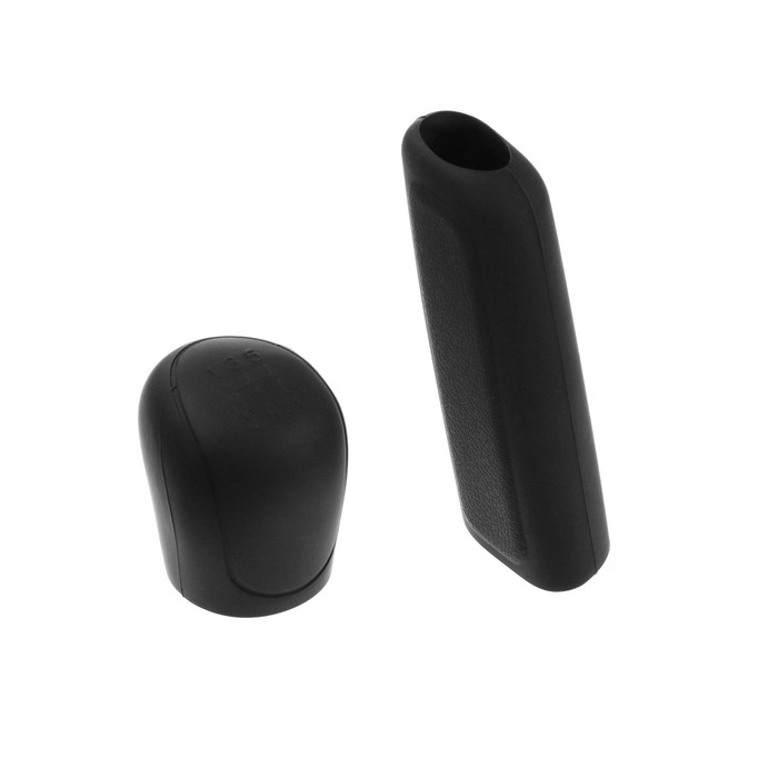 Набор из двух чехлов для ручки переключения передач и ручки ручного тормоза. Чехлы выполнены из искусственной кожи черного цвета, защищают ручки от износа и повреждений. Придают интерьеру автомобиля стильный и аккуратный вид.
