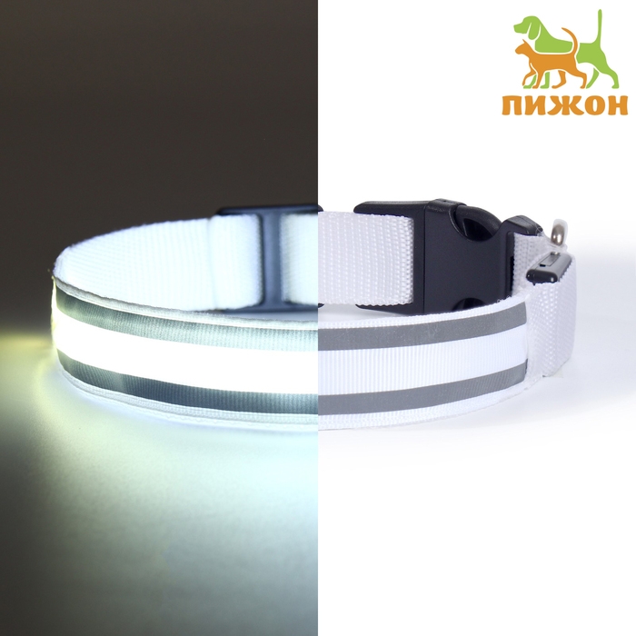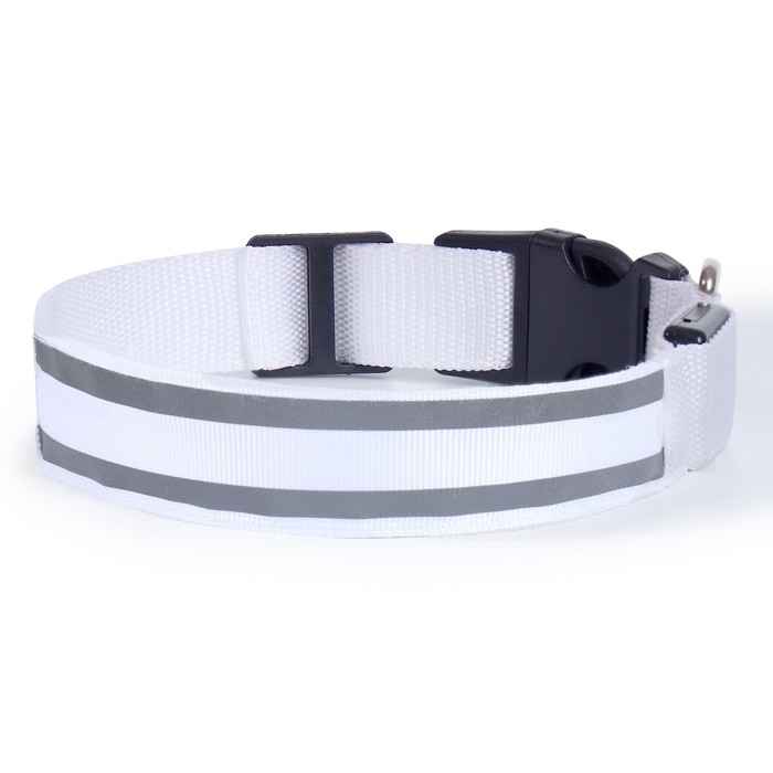 Ошейник с подсветкой "Двойная полоса", 3 режима свечения, белый