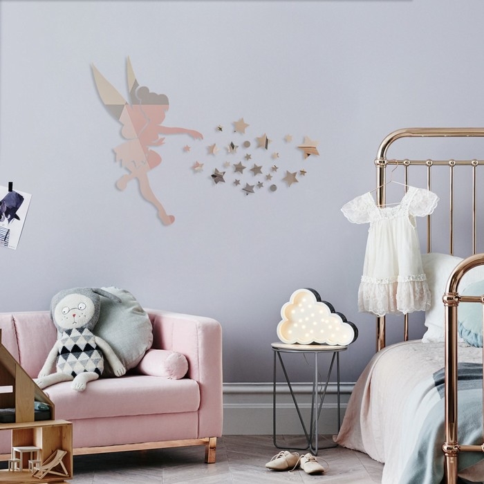 Наклейки интерьерные "Феечка", зеркальные, декор на стену, панно 46 х 71 см, 28 эл