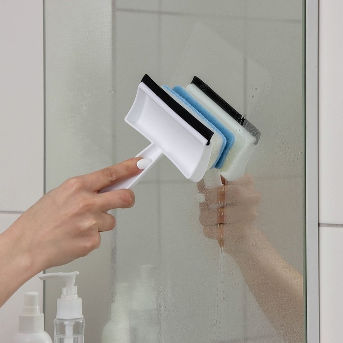 Окномойка с поролоновой насадкой Доляна «Компакт», для зеркал, стекол и душевых кабин, 12×18×4 см