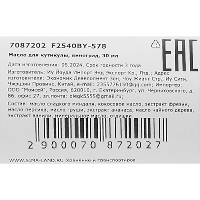 Масло для увлажнения и питания кутикулы 30 мл, виноград