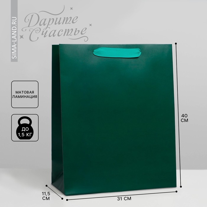 Пакет подарочный ламинированный, упаковка, «Изумрудный», L 31 х 40 х 11.5 см