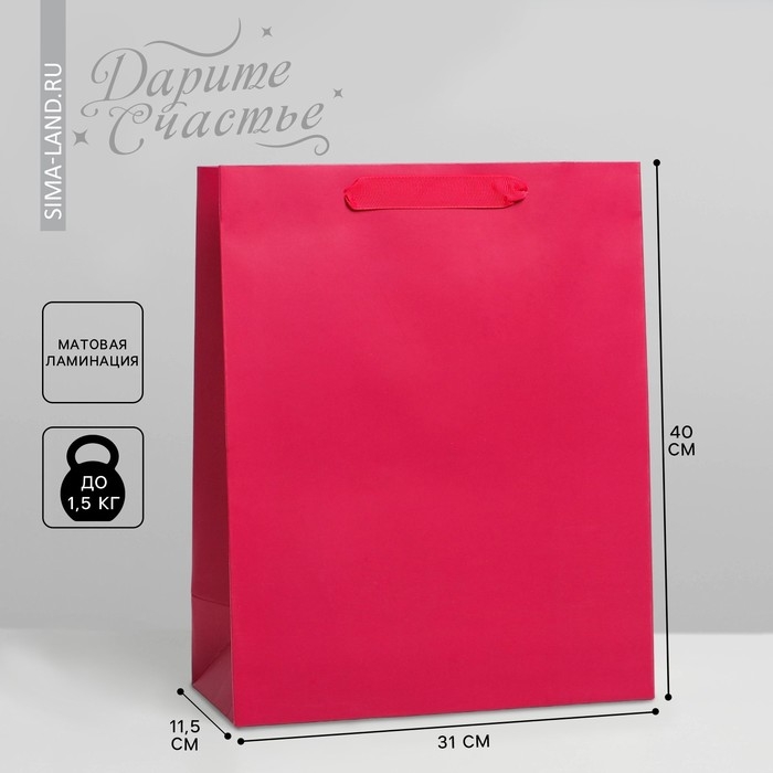 Пакет подарочный ламинированный, упаковка, «Фуксия», L 31 х 40 х 11.5 см