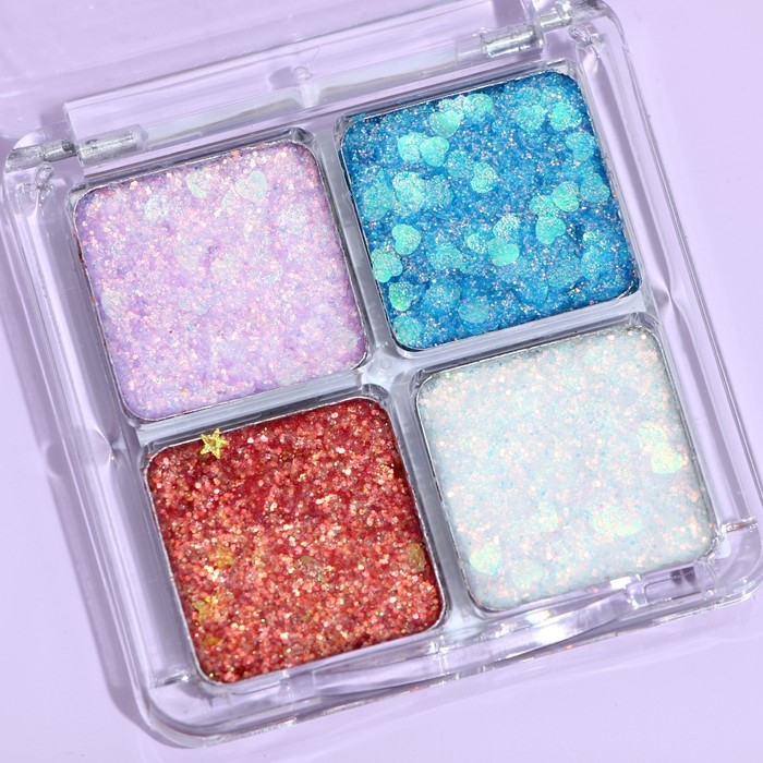 Палетка теней имеет удобную форму и хороший выбор цветов, в том числе блестящих. Тени хорошо пигментированы, не пылят, не скатываются, отлично тушуются и наносятся на веки.