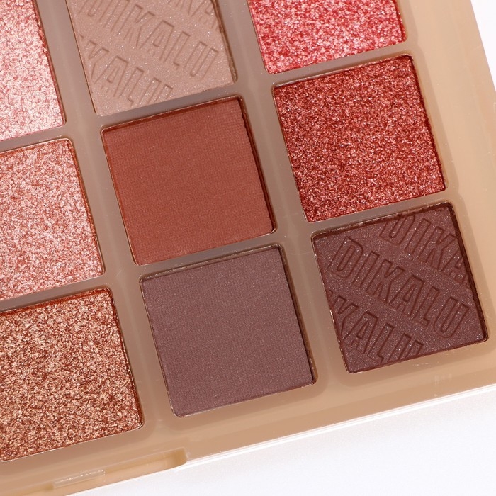 Палетка теней имеет удобную форму и хороший выбор цветов, в том числе блестящих. Тени хорошо пигментированы, не пылят, не скатываются, отлично тушуются и наносятся на веки.