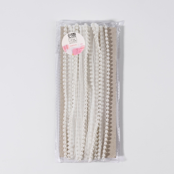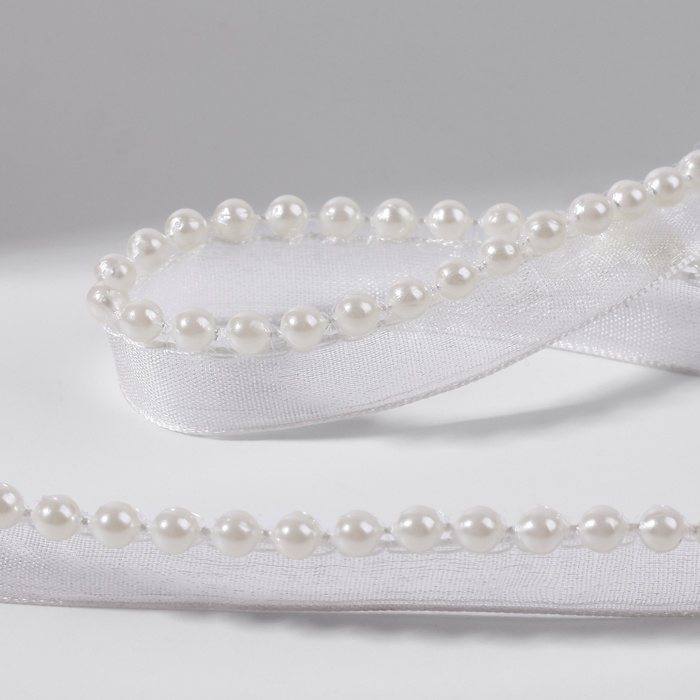 Лента декоративная с бусинами, 12 мм, 4,5 ± 0,5 м, цвет белый
