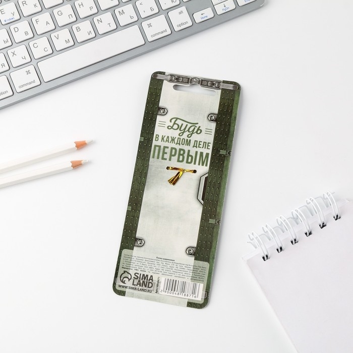 Ручка прикол шариковая синяя паста танк «Настоящему мужику» на подложке
