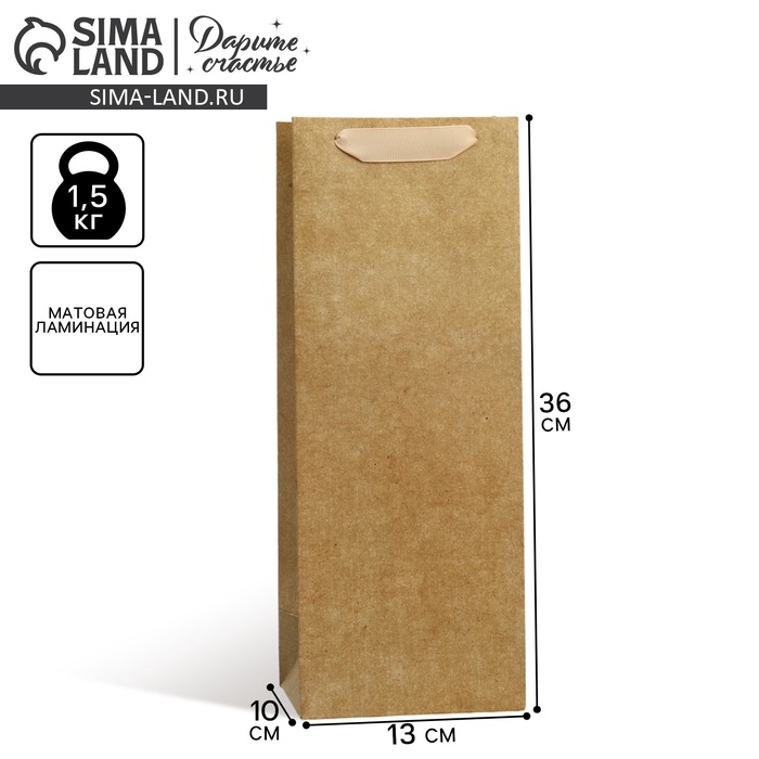 Пакет подарочный под бутылку, упаковка, «Крафтовый», 13 x 36 x 10 см