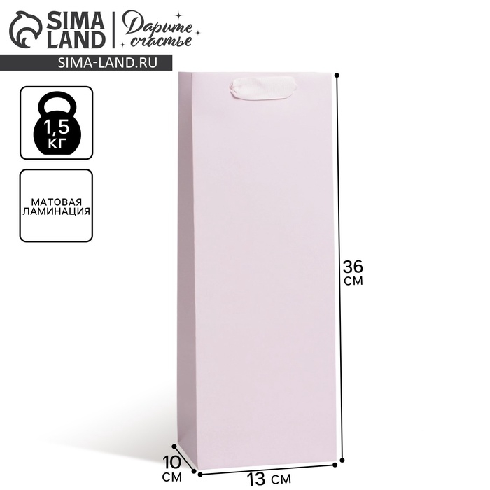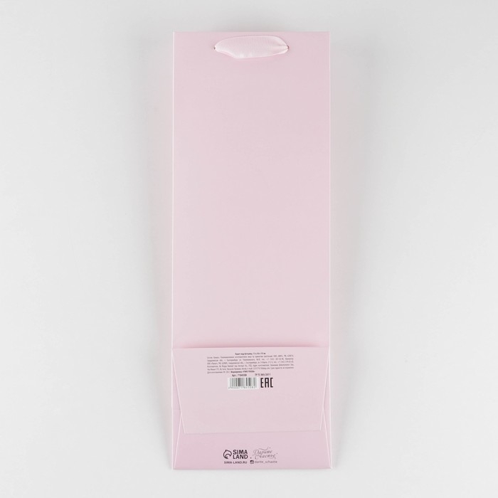 Пакет подарочный под бутылку, упаковка, «Розовый», 13 x 35 x 10 см
