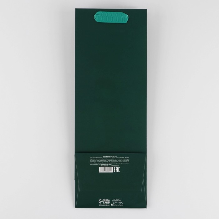 Пакет подарочный под бутылку, упаковка, «Изумруд», 13 x 36 x 10 см