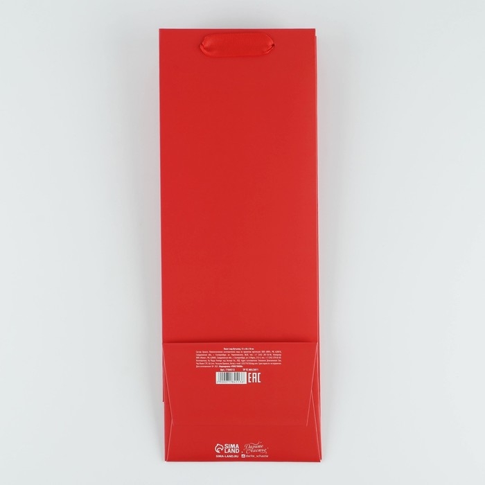 Пакет подарочный под бутылку, упаковка, «Красный», 13 x 36 x 10 см