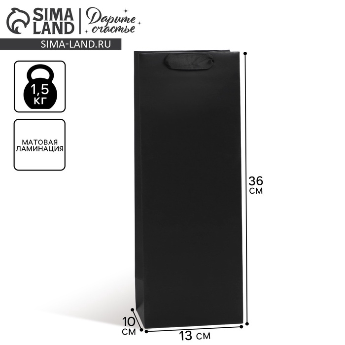 Пакет подарочный под бутылку, упаковка, «Чёрный», 13 x 36 x 10 см