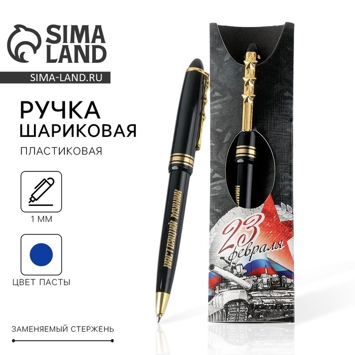 Ручка шариковая синяя паста «23 февраля танк», пластик
