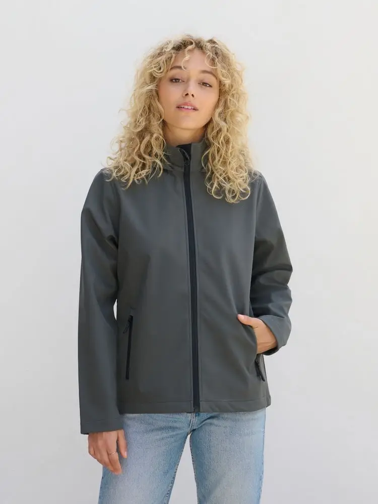Куртка софтшелл с капюшоном женская Race Women, черная, размер S