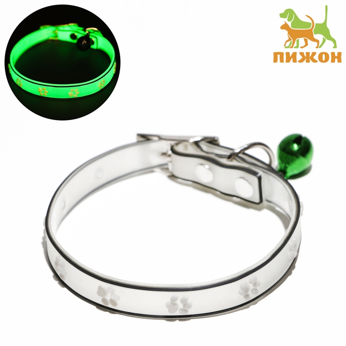 Ошейник "Лапки", 28 х 1 см, ОШ 18-24 см, прозрачный/белый