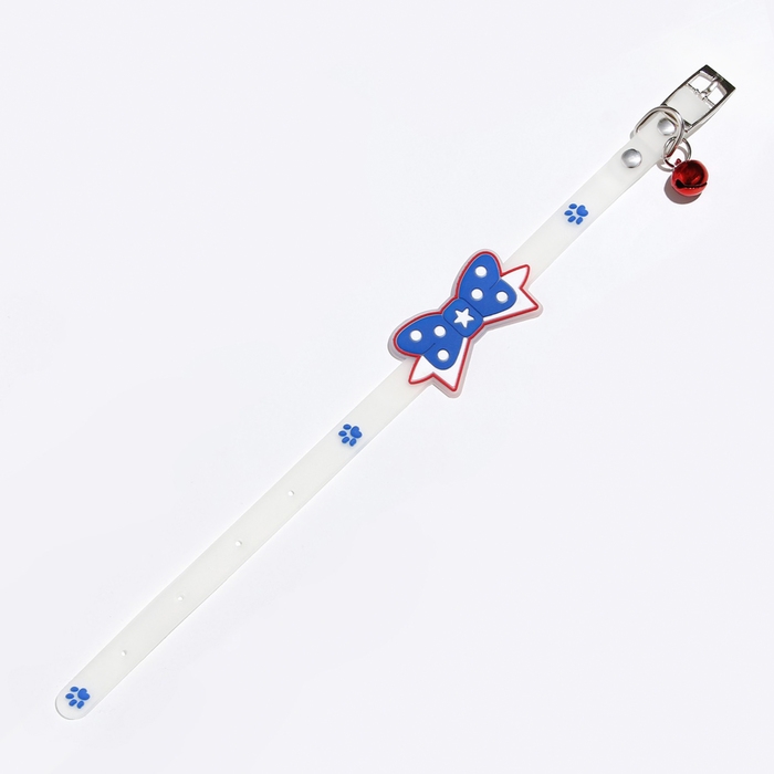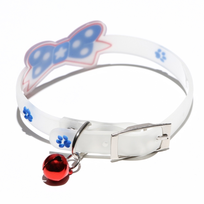 Ошейник "Бантик", 28 х 1 см, ОШ 18-24 см, прозрачный/синий