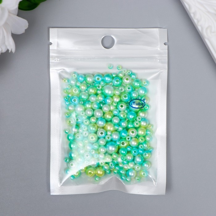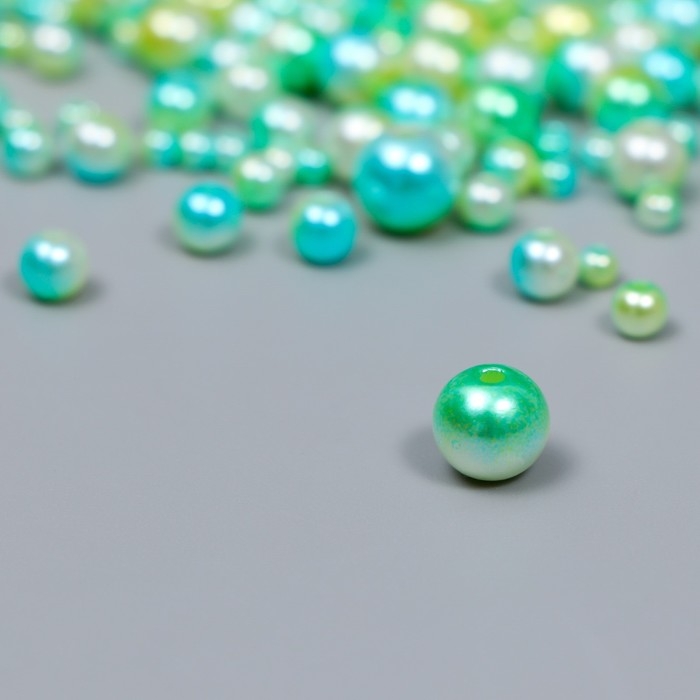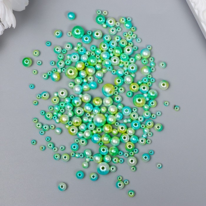 Бусины для творчества пластик "Круглые. Градиент. Русалка зелень" d=3-8 мм, набор 10 гр