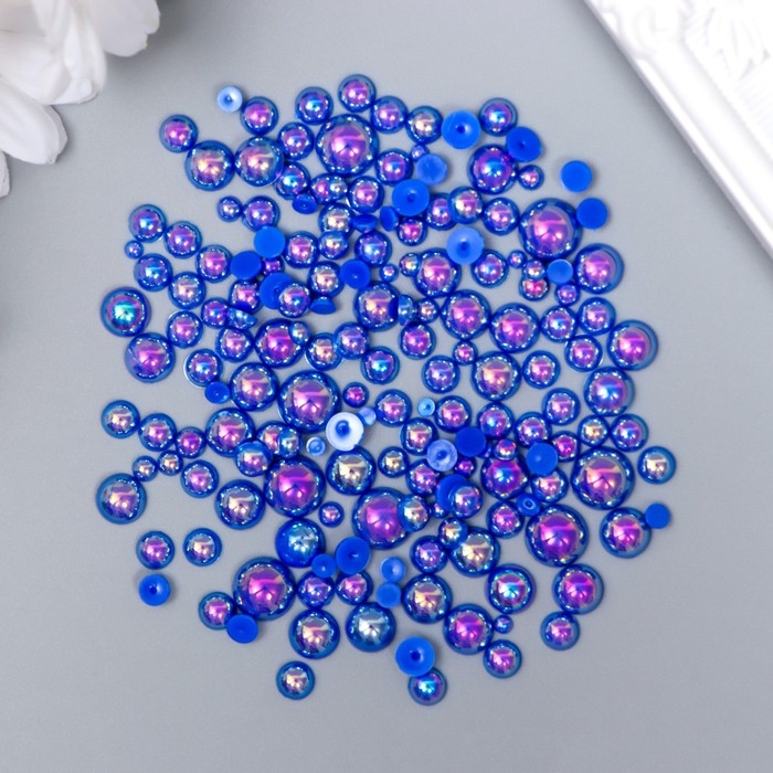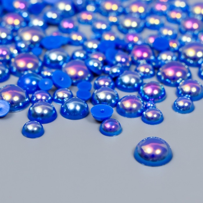 Декор для творчества пластик "Половинки бусин. Синий перламутр" d=3-10 мм, набор 10 гр