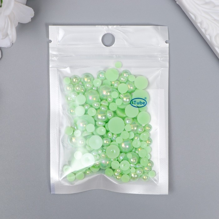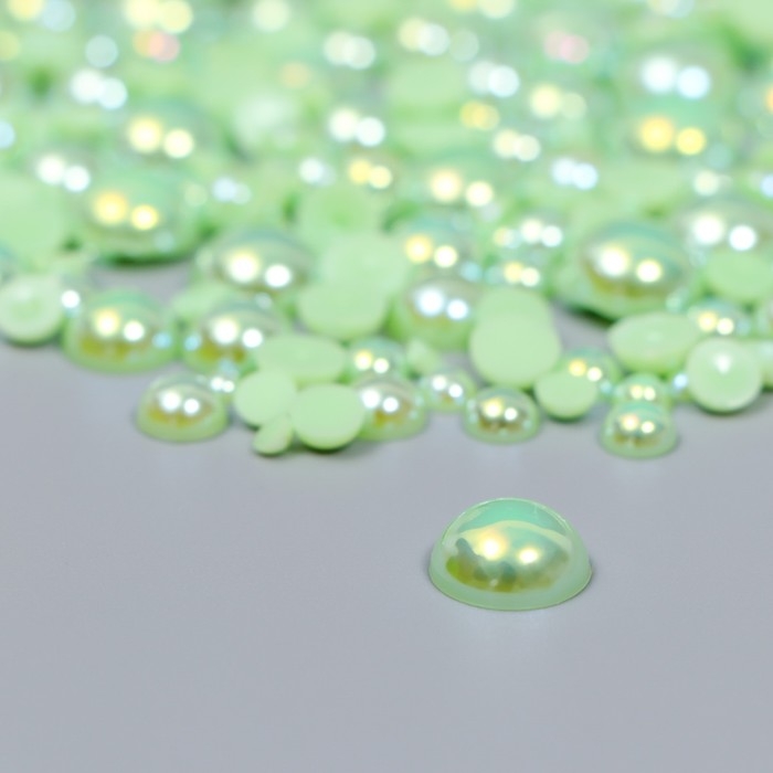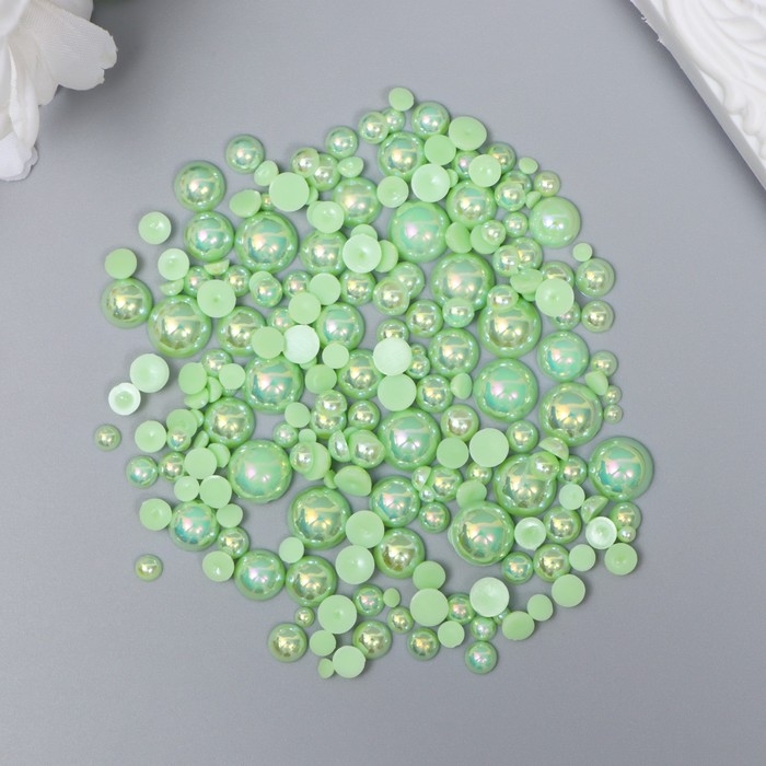 Декор для творчества пластик "Половинки бусин. Светло-зелёный перламутр" d=3-10мм, н-р 10 гр 74596