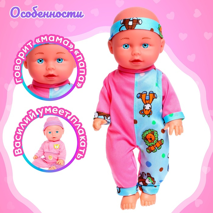 Пупс музыкальный «Василий» работает от батареек, МИКС