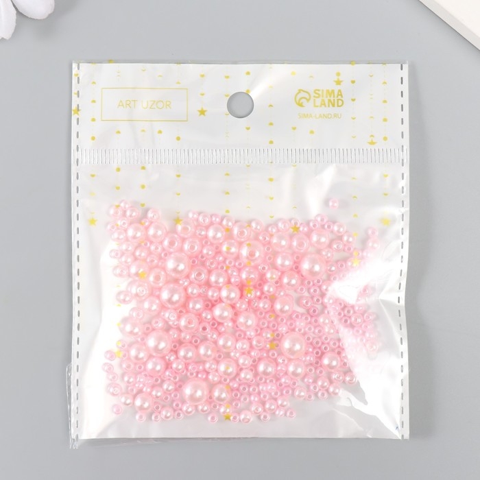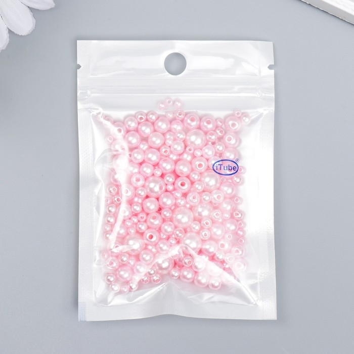 Бусины для творчества пластик "Круглые. Розовая пудра" d=3-8 мм, набор 10 гр