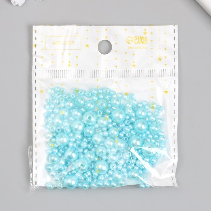 Бусины для творчества пластик "Круглые. Голубое небо" d=3-8 мм, набор 10 гр