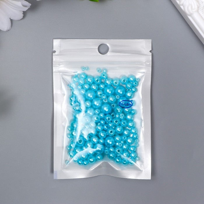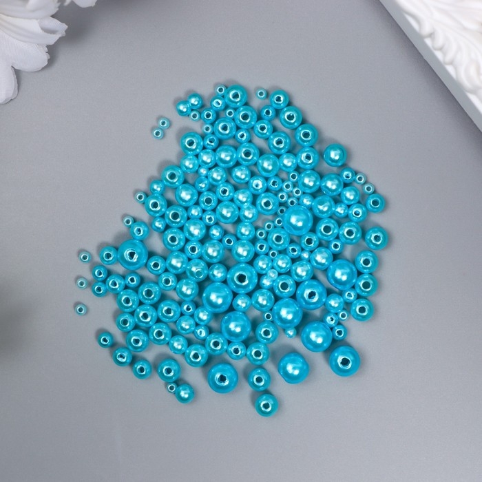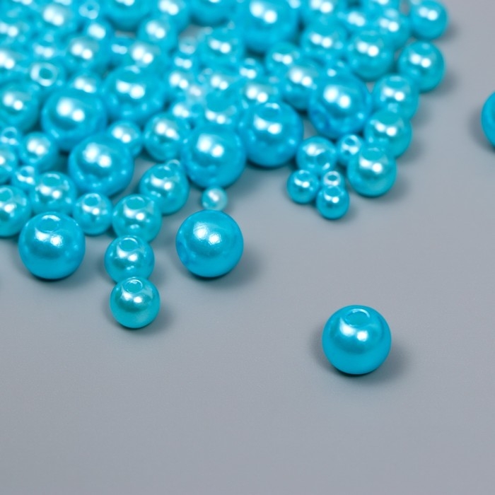 Бусины для творчества пластик "Круглые. Лазурный" d=3-8 мм, набор 10 гр