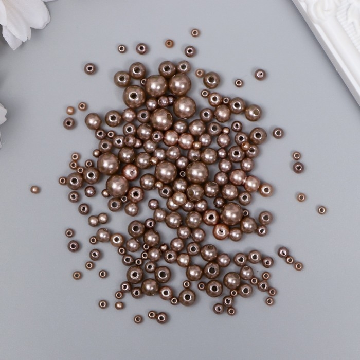 Бусины для творчества пластик "Круглые. Миндаль" d=3-8 мм, набор 10 гр