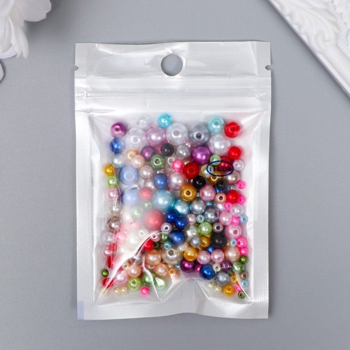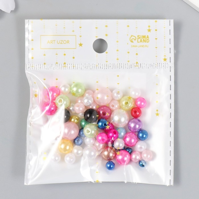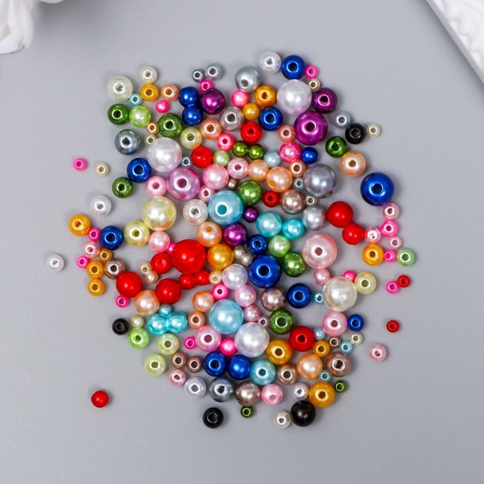 Бусины для творчества пластик "Круглые. Ассорти" d=3-8 мм, набор 10 гр