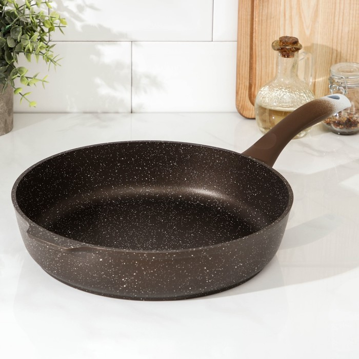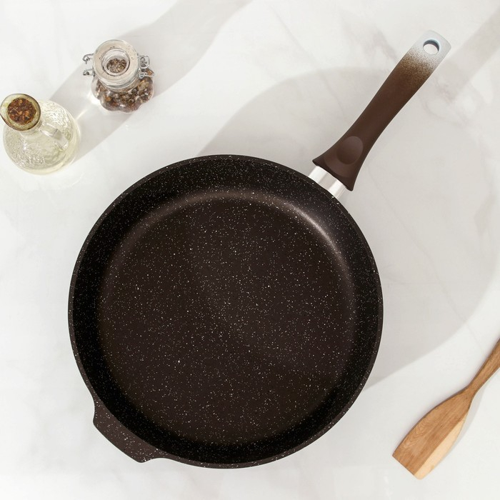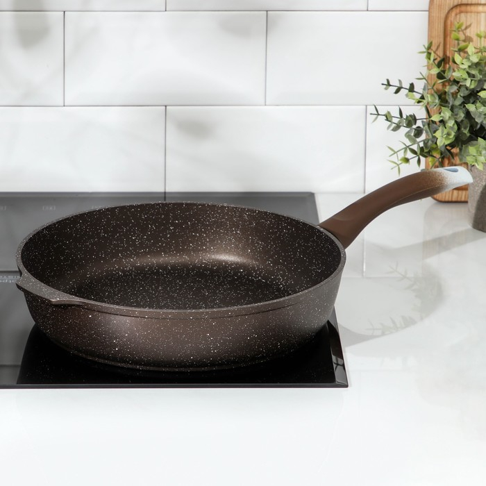 Сковорода, d=28 см, пластиковая ручка, антипригарное покрытие, цвет кофейный мрамор