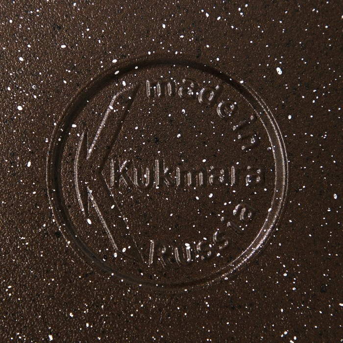 Посуда Kukmara «Мраморная» изготовлена из литого алюминия и покрыта инновационным антипригарным мраморным покрытием на водной основе, усиленным сверхтвёрдыми частицами минералов.