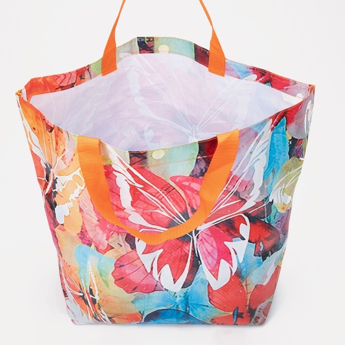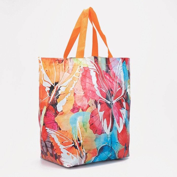 Сумка хозяйственная без застёжки, цвет разноцветный/оранжевый