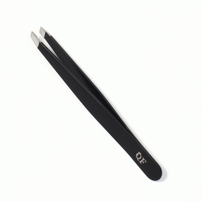 Пинцет «Геометрия», скошенный, заострённый, 9,5 см, цвет чёрный