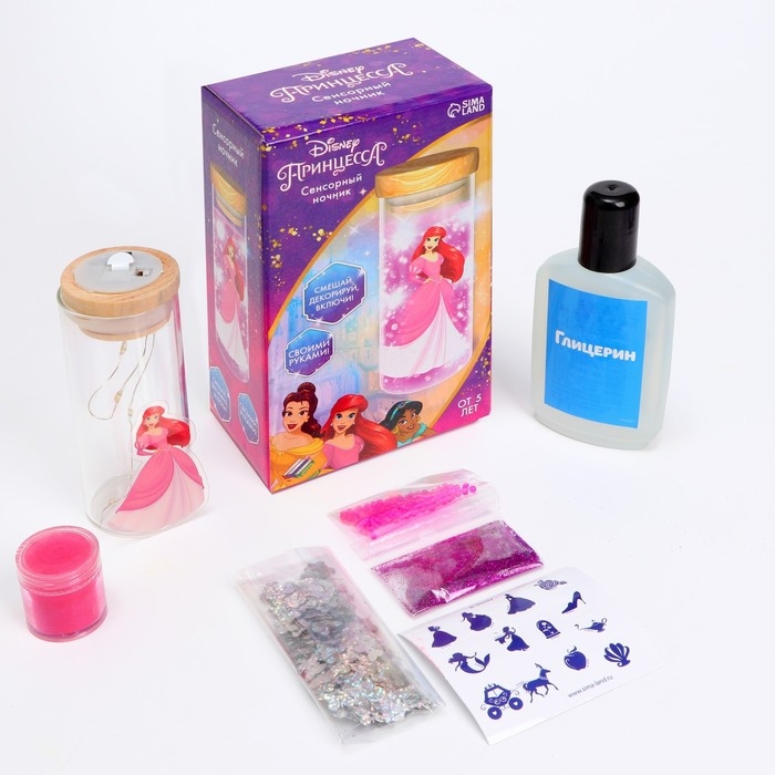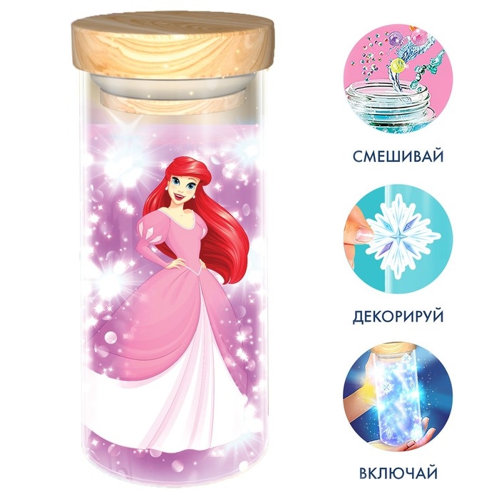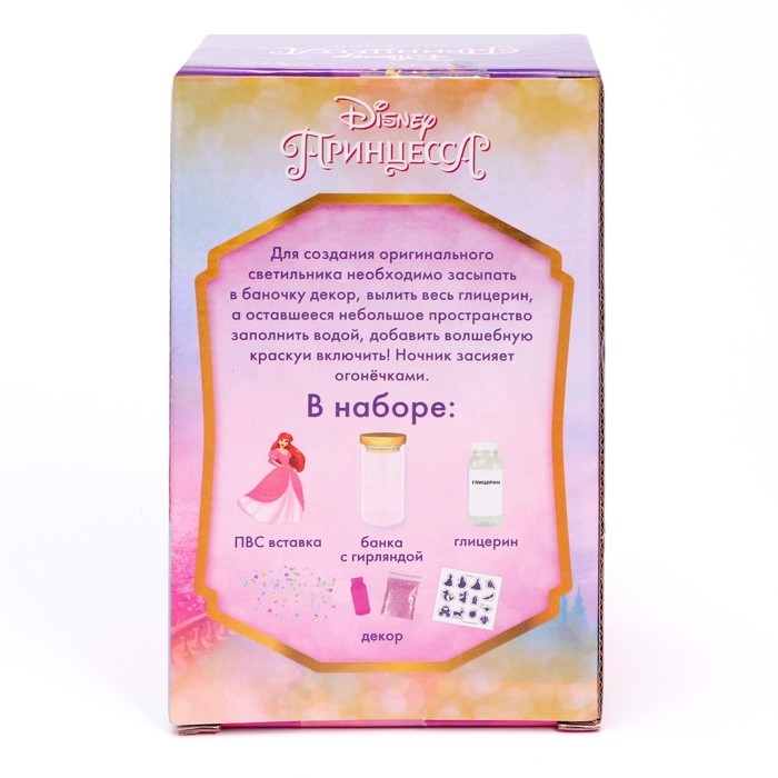Для создания оригинального светильника необходимо засыпать в баночку декор, вылить весь глицерин из набора, а оставшееся небольшое пространство заполнить водой. Затем нужно добавить волшебную краску и включить гирлянду. Ваш ночник готов!