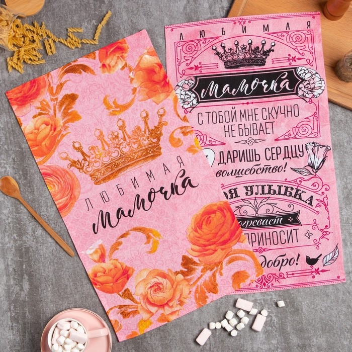 Набор кухонных полотенец Доляна «Мамочка» 35х60 см - 2шт, 100% хл
