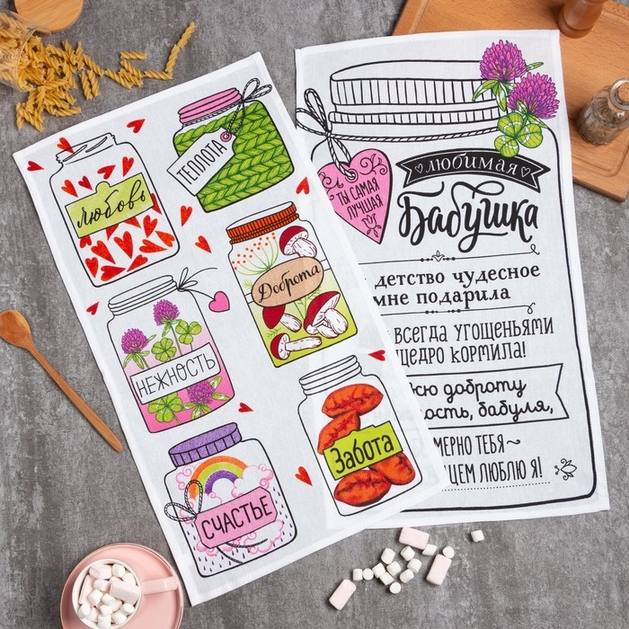 Набор кухонных полотенец Доляна «Все цветы «Для тебя»,» 35х60 см - 2шт, 100% хл