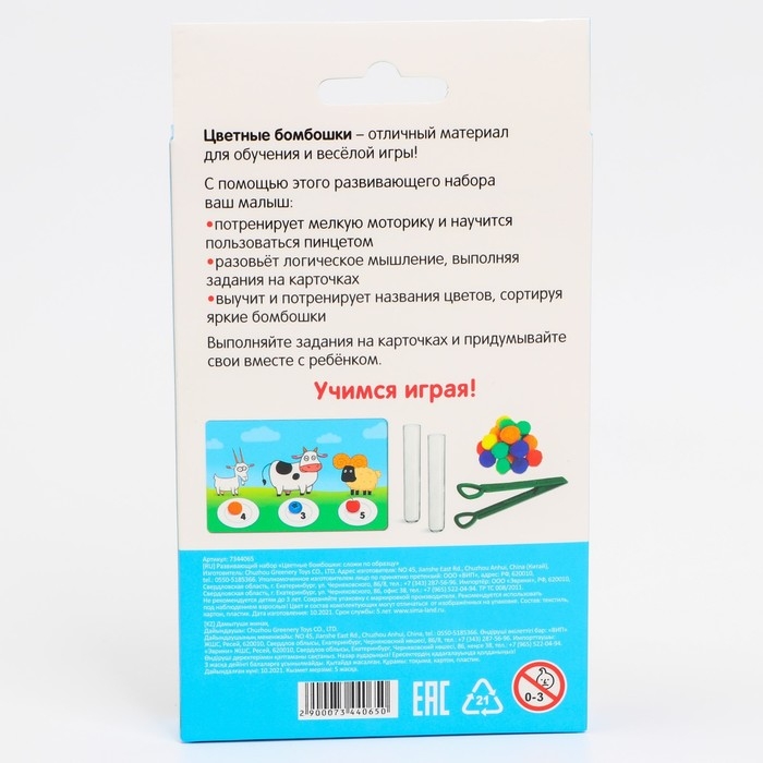 Развивающий набор «Цветные бомбошки: сложи по образцу», цвета, счёт, по методике Монтессори