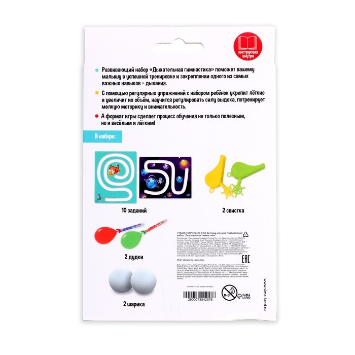 Развивающий набор «Дыхательная гимнастика», 10 заданий, 3+