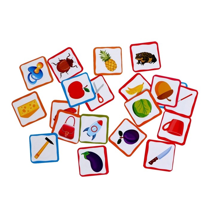 К каждой карточке-основе прилагаются 10 карточек с предметами 1 карточка с персонажем. Они совпадают цветом рамки с основной карточкой.