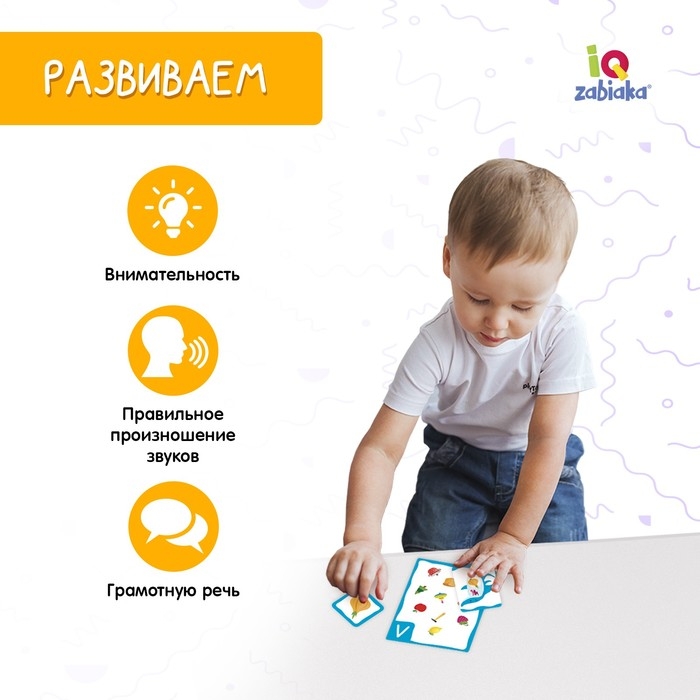 Выберите звук, который малыш будет тренироваться произносить. И положите соответствующую карточку перед ним.