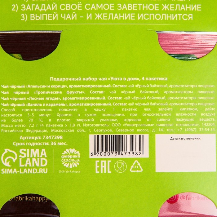 Чай в наборе «Уюта в дом», 4 пакетика x 1,8 г.