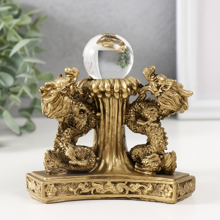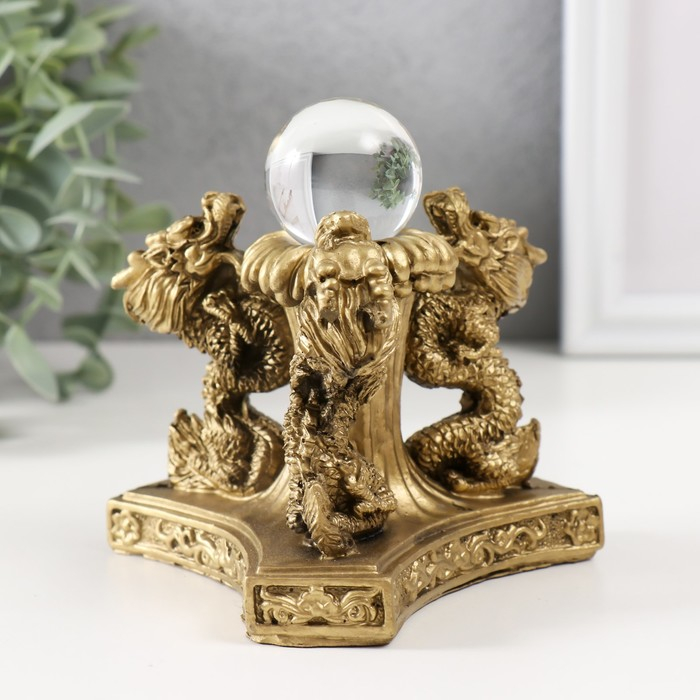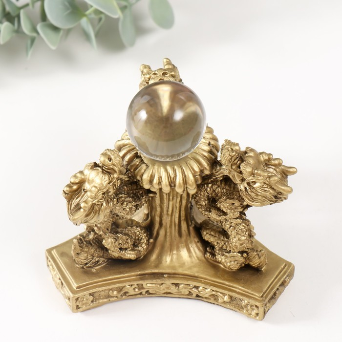 Нэцке полистоун бронза "Драконы со стеклянным шаром" 8х12х12 см