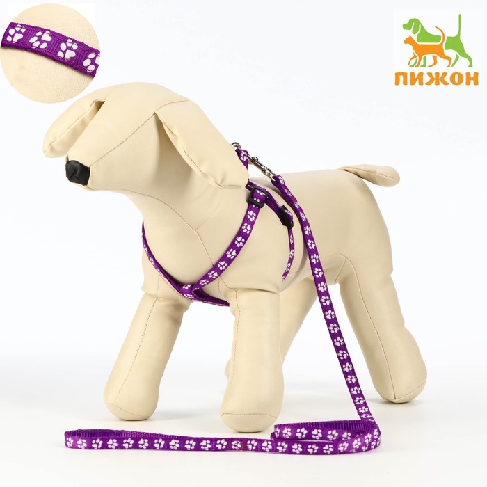 Комплект прошитый "Лапки", поводок 120 х 1 см, ОГ 23-35 см, фиолетовый
