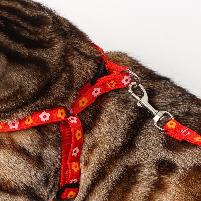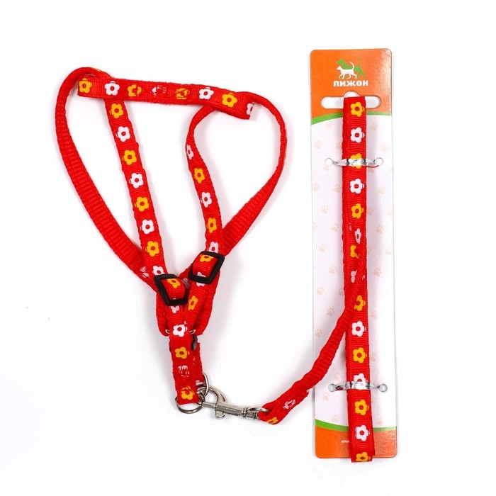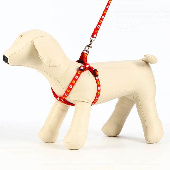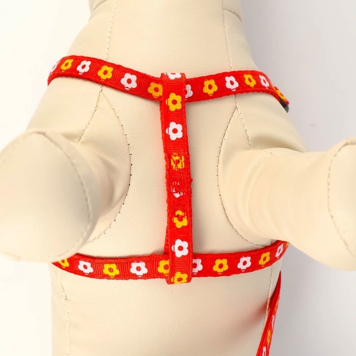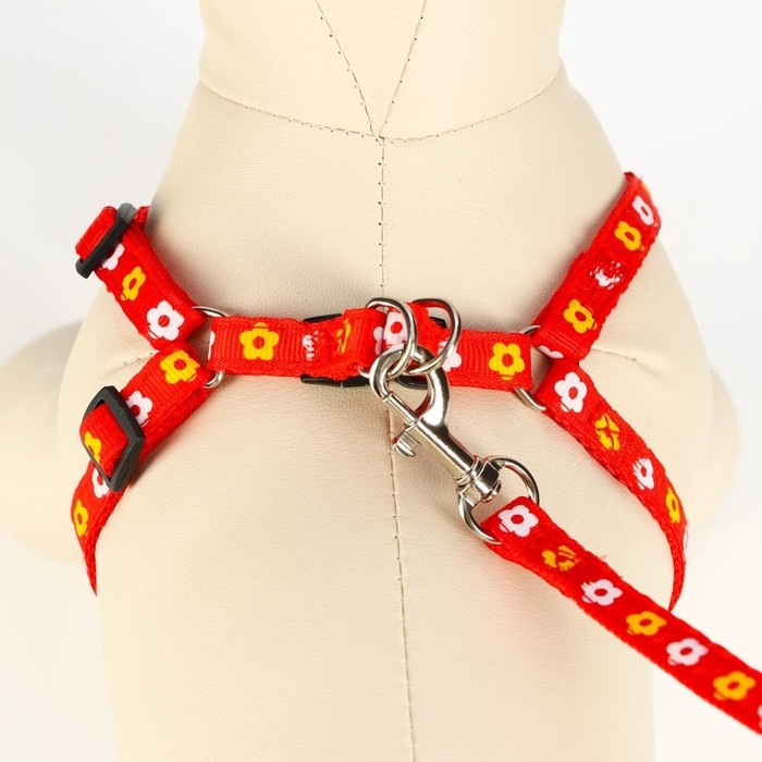 Комплект прошитый "Цветы", поводок 120 х 1 см, ОГ 23-35 см, красный