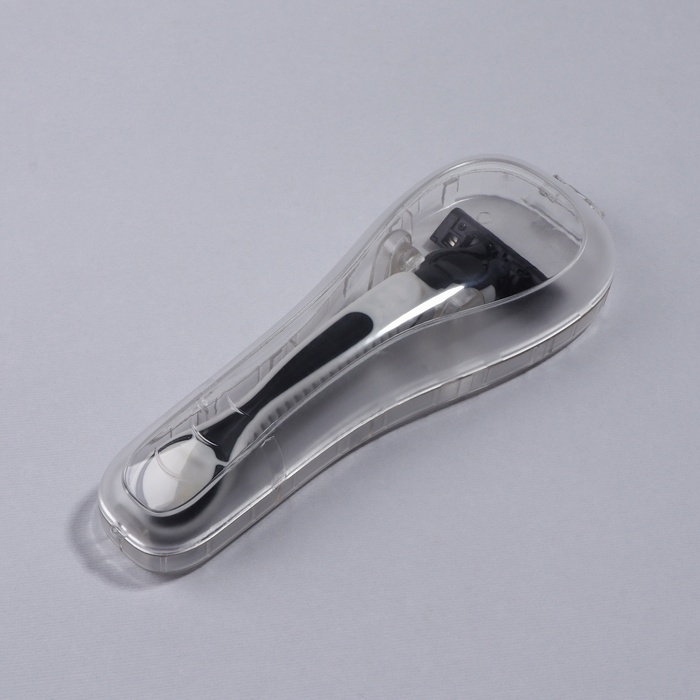 Контейнер для бритвы – это отличный помощник в любой поездке. Футляр компактный и не занимает много места в ручной клади. Органайзер обеспечивает гигиеническое хранение вашей бритвы, защищает её от пыли, лишней влаги, грибка и ржавчины. Держатель внутри футляра крепко фиксирует станок, а плотная крышка не позволяет бритве выпасть их чехла. Аксессуар изготовлен из прочного пластика, легко моется и устойчив к внешним воздействиям. Футляр отлично подойдёт для хранения в ванной комнате.
