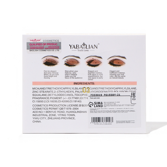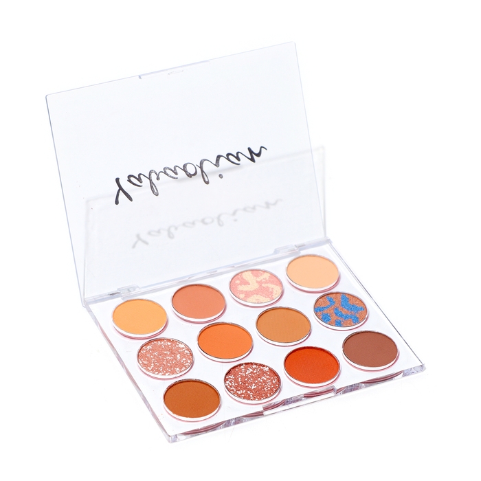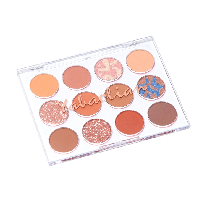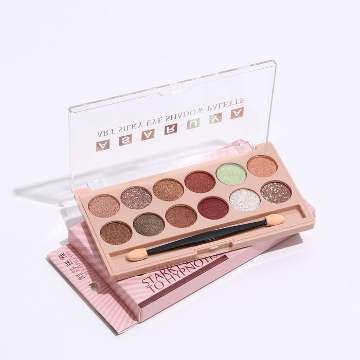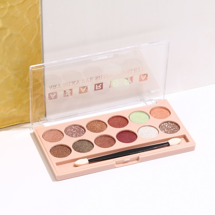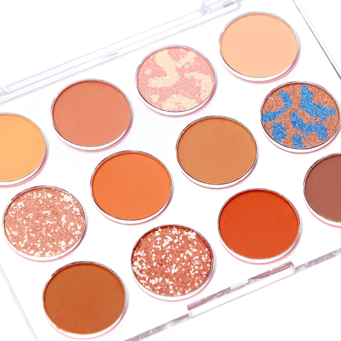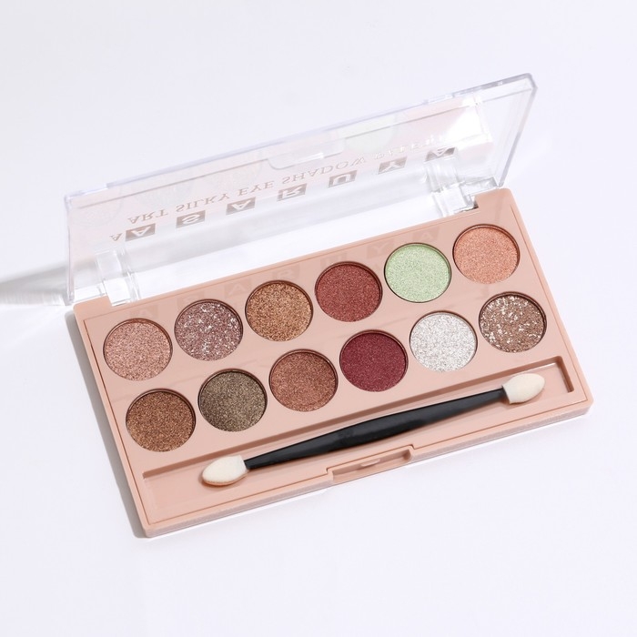 Палетка теней имеет удобную форму и хороший выбор цветов, в том числе блестящих. Тени хорошо пигментированы, не пылят, не скатываются, отлично тушуются и наносятся на веки.