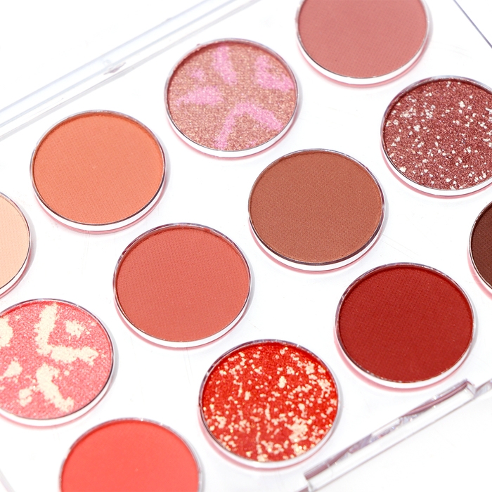 Палетка теней имеет удобную форму и хороший выбор цветов, в том числе блестящих. Тени хорошо пигментированы, не пылят, не скатываются, отлично тушуются и наносятся на веки.